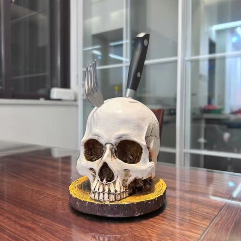 Coltello con teschio in resina personalizzato a forma di teschio per decorazioni da scrivania per interni da cucina