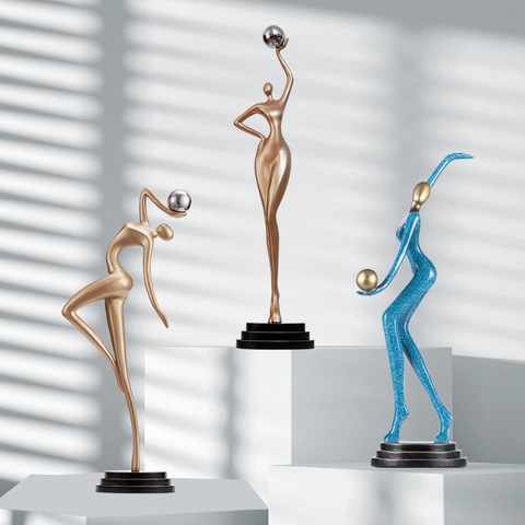 Décoration intérieure de luxe légère, accents de figure abstraite, sculpture en fibre de verre, grande statue moderne et maigre décoration de sol pour la maison