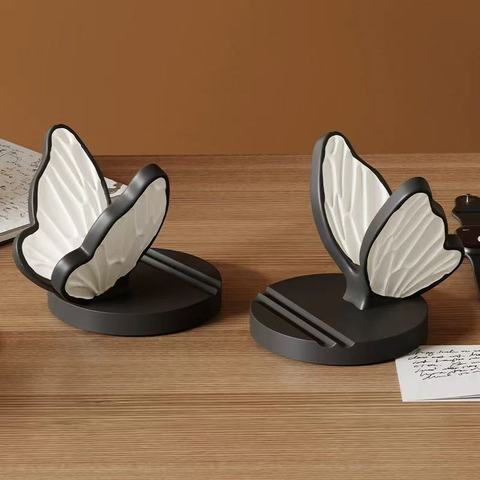 Custom Design Schmetterling Statuen Harz Schwarz-Weiß-Schmetterling Handy halter Handy Pad Halter
