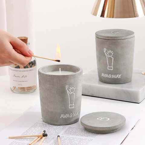 Tùy Chỉnh Sản Phẩm Mới Đơn Giản Mộc Mạc Thủ Công Mỹ Nghệ Phòng Nhà Điểm Nhấn Trang Trí Xi Măng Nến Cup Với Nắp Hương Liệu Nến Jar