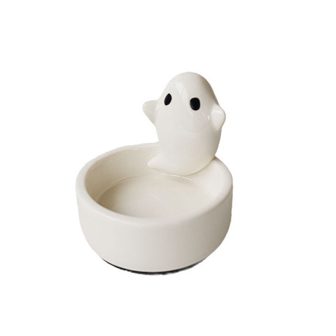 Tùy Chỉnh Trang Trí Nội Thất Nhà Sản Xuất Halloween Trang Trí Nội Thất Sứ Phim Hoạt Hình Mèo Con Nến Gốm Trắng Ma Tealight Người Giữ Ngọn Nến