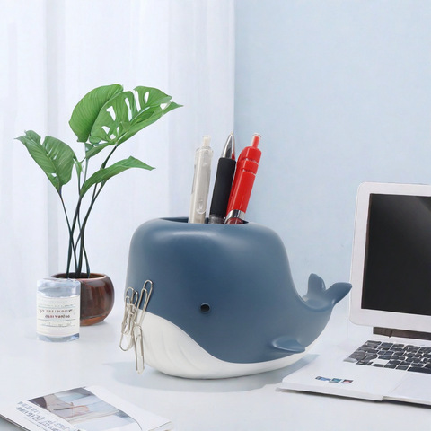 Design personalizado Fabricado Resina Multifuncional Baleia Forma Estatueta Decorativa Pen Holder Phone Holder
