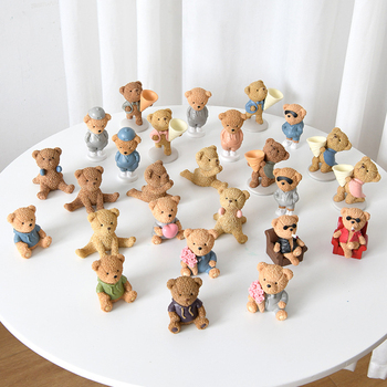 Custom Resin Crafts Other Home Decor Cute Bear Figurine Accessories Miniature Cartoon Bear Figure Toy Tabletop Ornament Piece